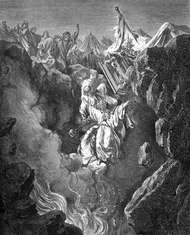 16:31-35 Sotva to všechno domluvil, rozpoltila se pod nimi půda, 32 země otevřela svůj chřtán a pohltila je i jejich obydlí a všechny lidi, kteří byli s Kórachem, i všechen majetek. 33 Sestoupili do podsvětí zaživa se vším, co bylo jejich, a země se nad nimi zavřela; zmizeli zprostředku shromáždění. 34 Celý Izrael, který byl kolem nich, při jejich křiku utekl. Řekli si: "Aby i nás země nepohltila." 35 Od Pána pak vyšlehl oheň a pozřel těch dvě stě padesát mužů přinášejících kadidlo.